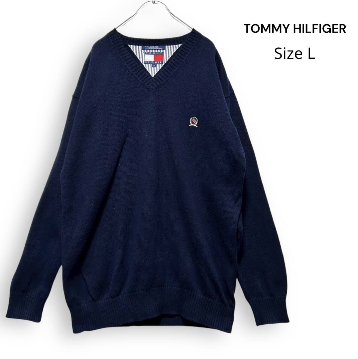 A2622/ 90s TOMMY HILFIGER トミーヒルフィガー コットン ニット セーター ネイビー サイズL