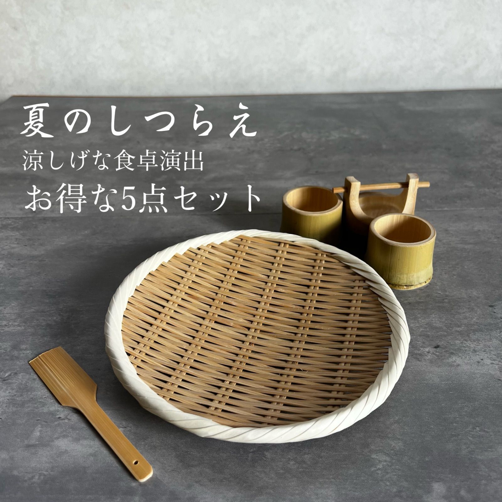 【数量限定】【定価より1000円お得!】竹製品5点セット 盆ざる 竹うつわ 便利ハケ 国産 アウトレット 夏 食器 そうめん 蕎麦 キッチン用品 竹ザル 国産 竹製品