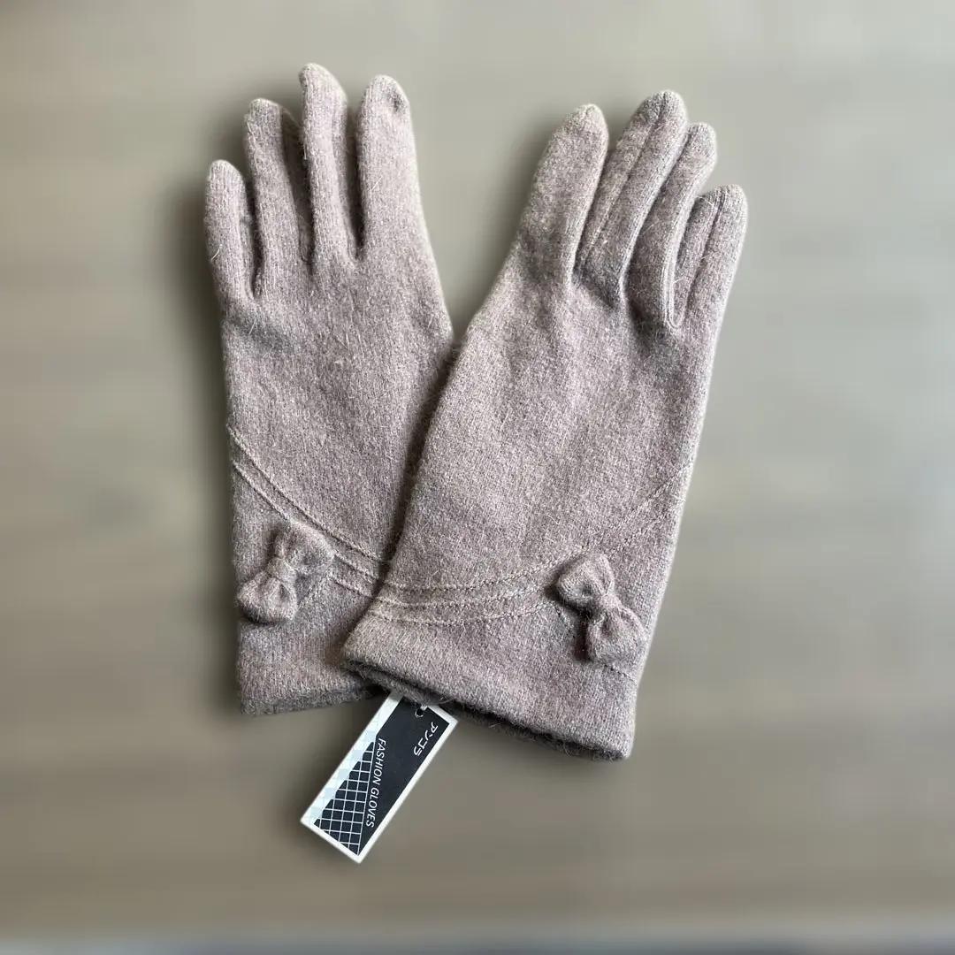 カシミヤ製ブラウン手袋刺繍付き 日本製