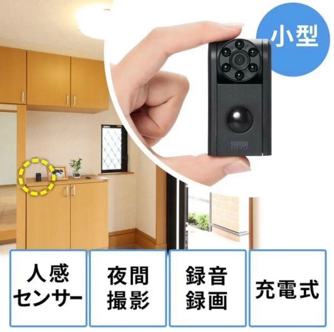 サンワダイレクト 防犯カメラ 小型屋内用HD画赤外線LED赤外線感知音声記録可能