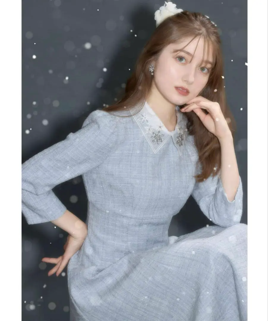 値下げ⭐︎【美品】tocco closet レース襟付きツイードワンピース