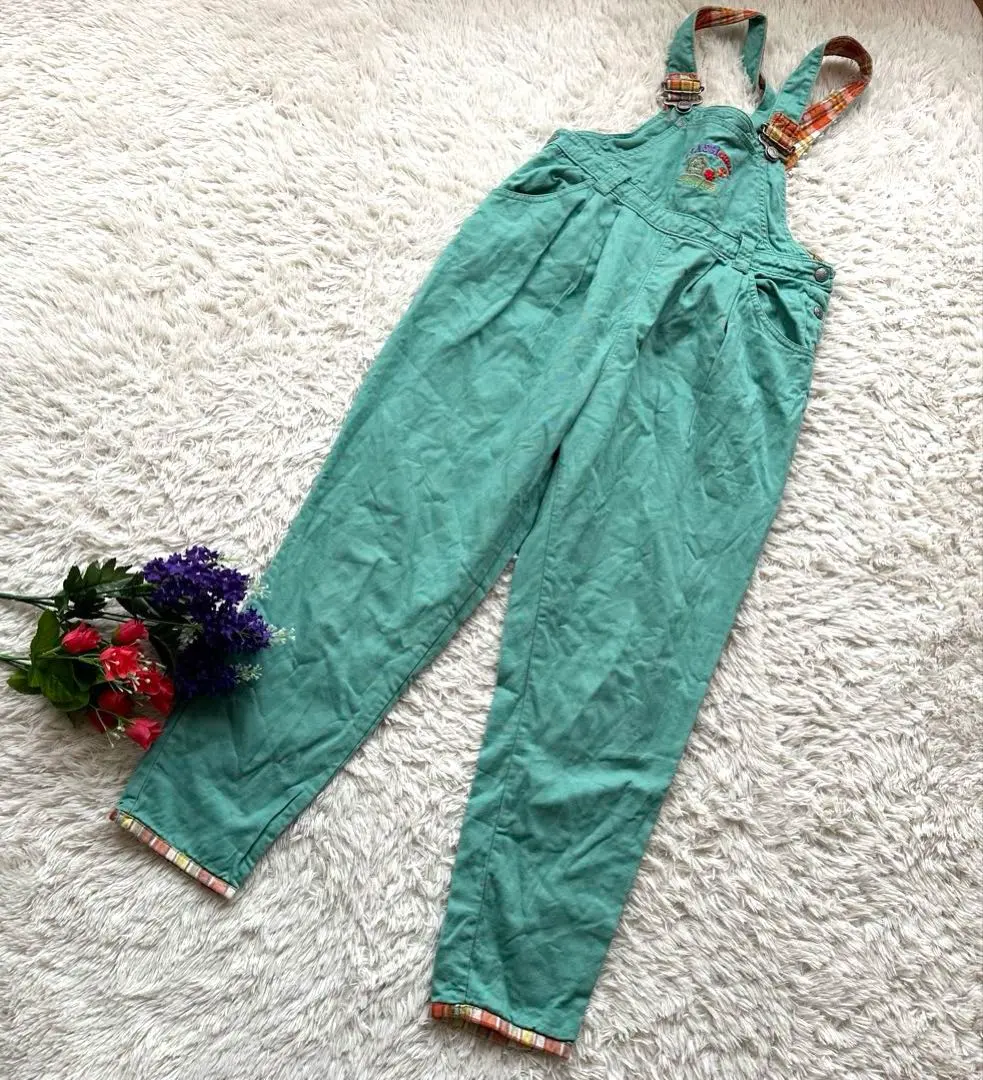 【kids150】【コットン100%】【刺繍】エメラルドグリーンサロペット