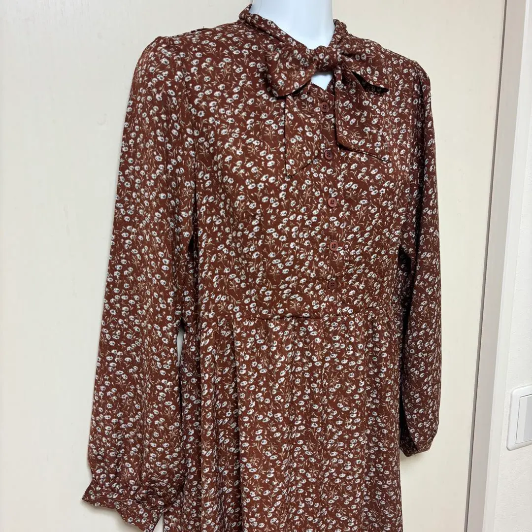 しまむら ロング ワンピース 小花柄 ブラウン 長袖 ボタニカル柄 ガーリー