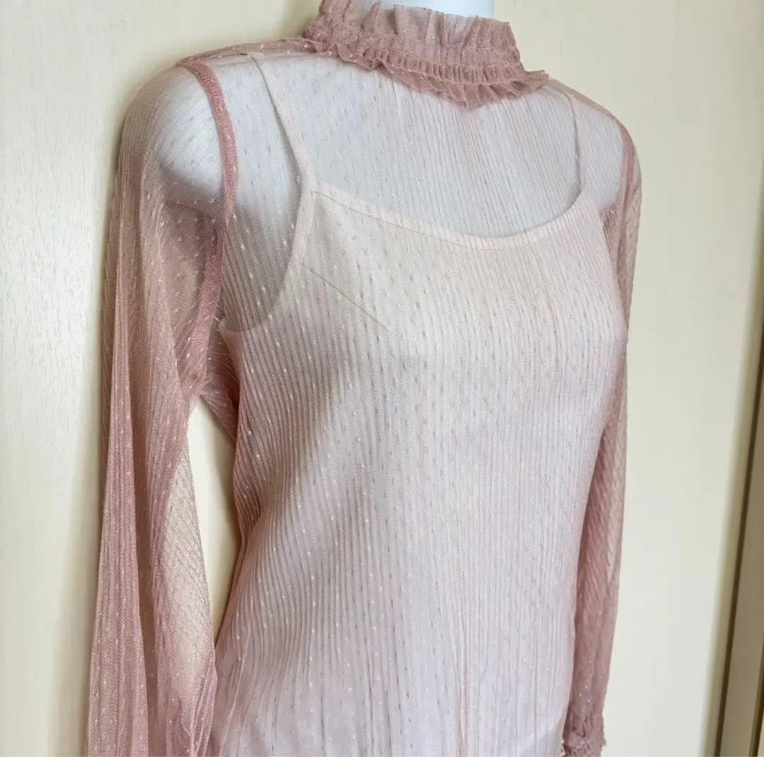 チコ ドットチュールハイネックブラウス シアー トップス 長袖 ピンク