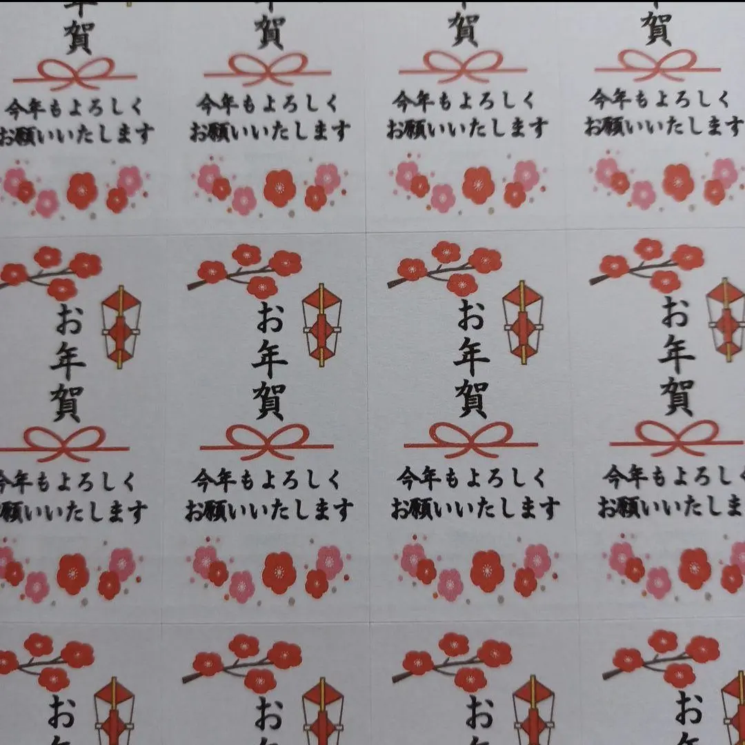 年賀状じまいシール 縦型 梅 門松 1シート44枚 匿名配送 サンキューシール