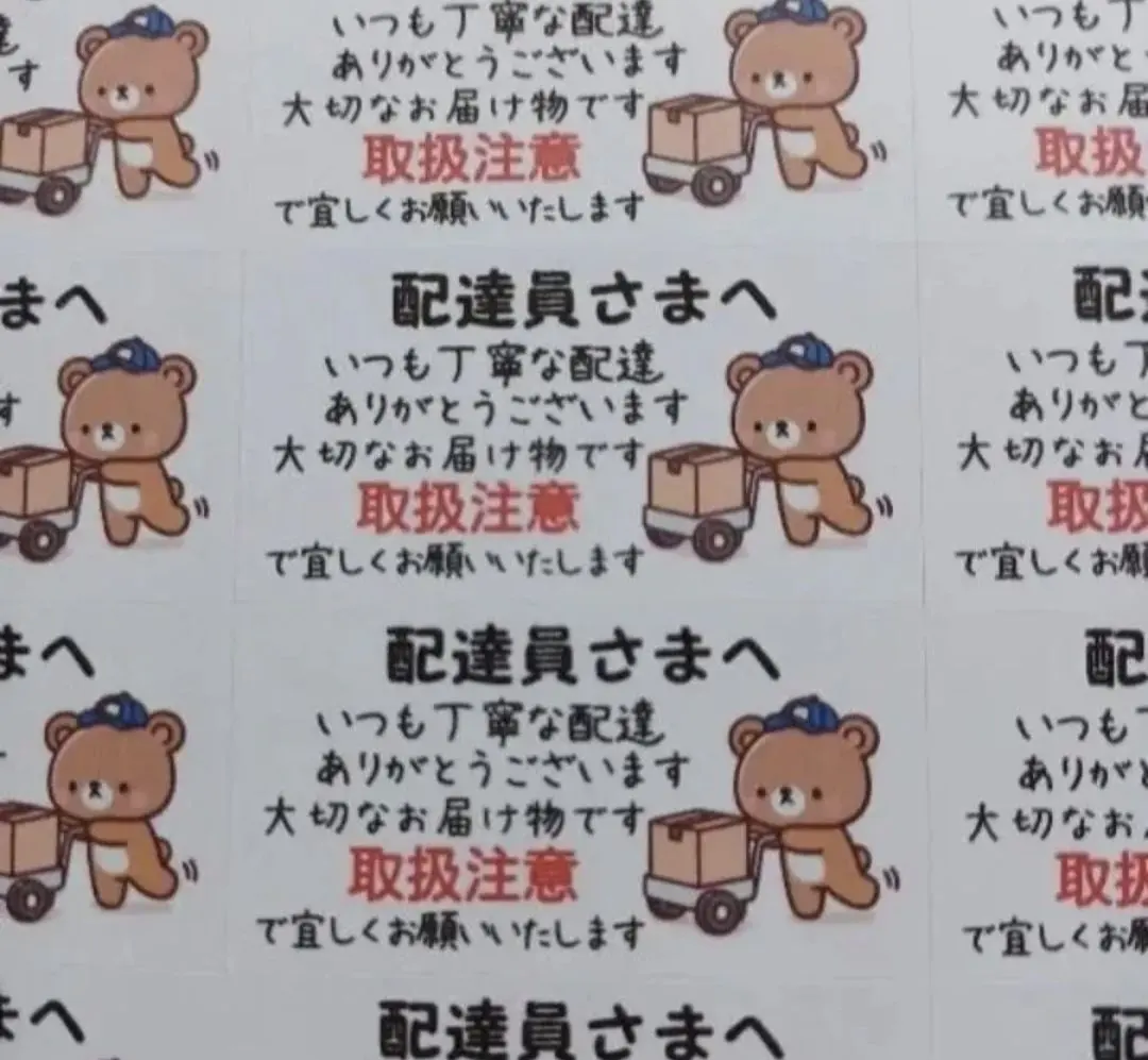 ケアシール 配達員さまへ 取扱注意 荷物を運ぶくま 2シート88枚