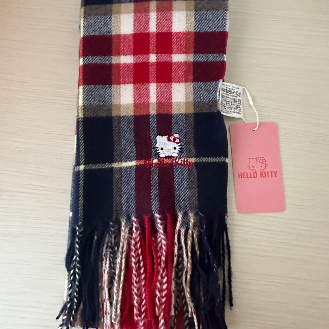 【新品タグ付き】キティ刺繍マフラー チェック柄