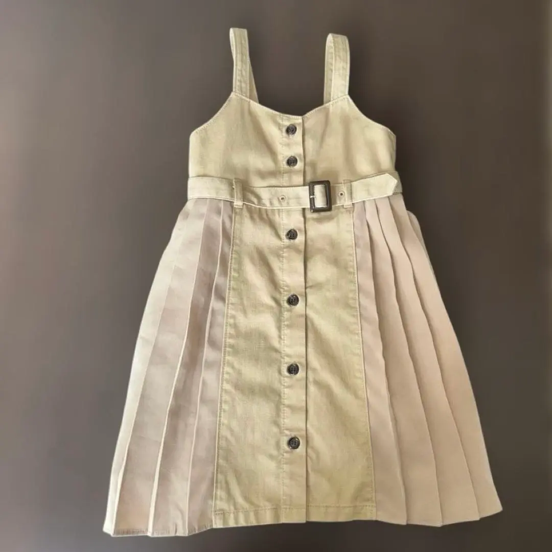 branshesベージュ プリーツ ジャンバースカート100女の子 発表会
