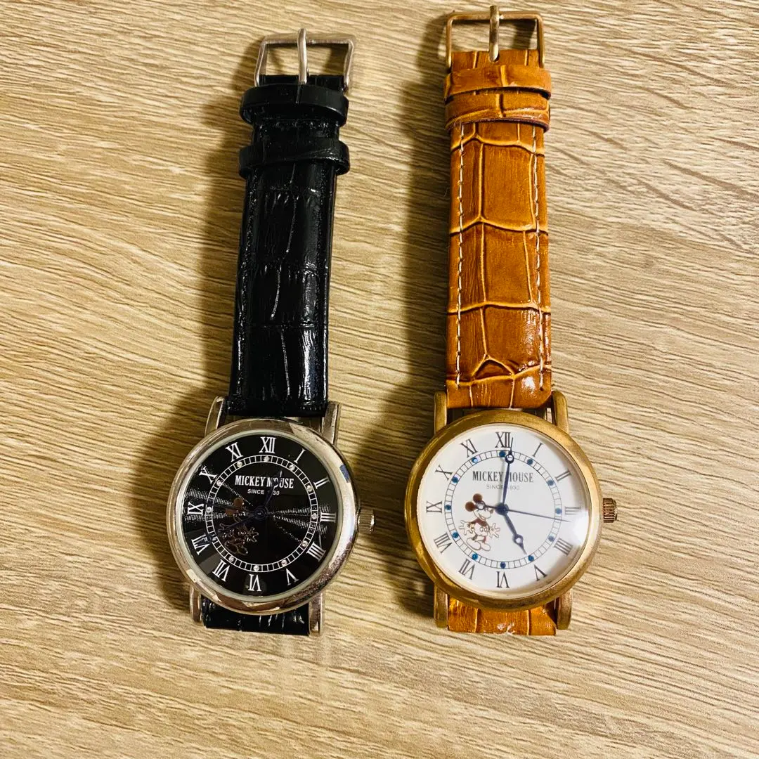 MICKEY MOUSE 腕時計 黒・茶 2点セット ペア売り