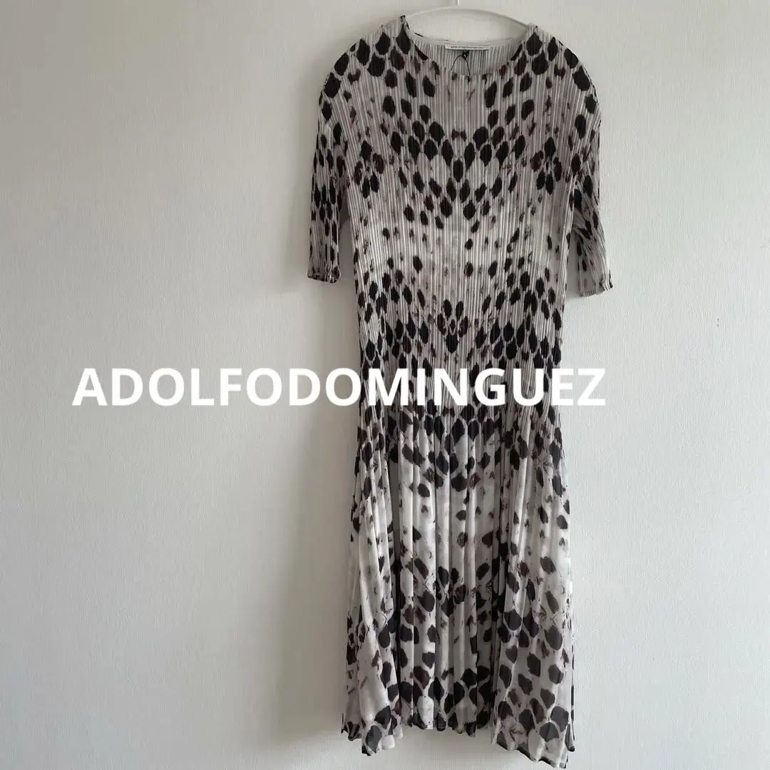 ADOLFODOMINGUEZ★Mサイズ総柄プリーツワンピースアニマルレオパード