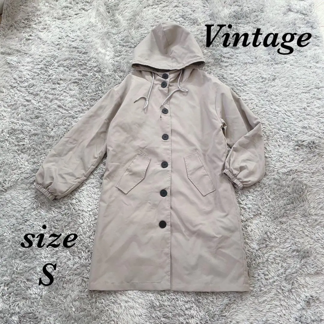 ヴィンテージ (S) コート 綿混 フード付 シンプル 春秋用 グレージュ