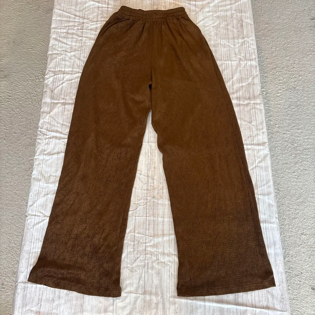 ハートマーケットリブ素材 ブラウン ワイドパンツ ゴムウエスト