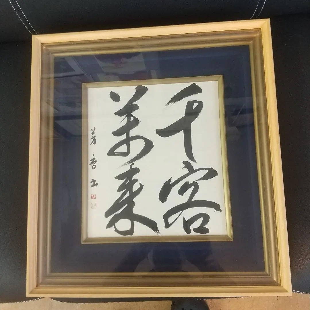 ☀️千客万来 書道作品 ♥️金色フレーム付き