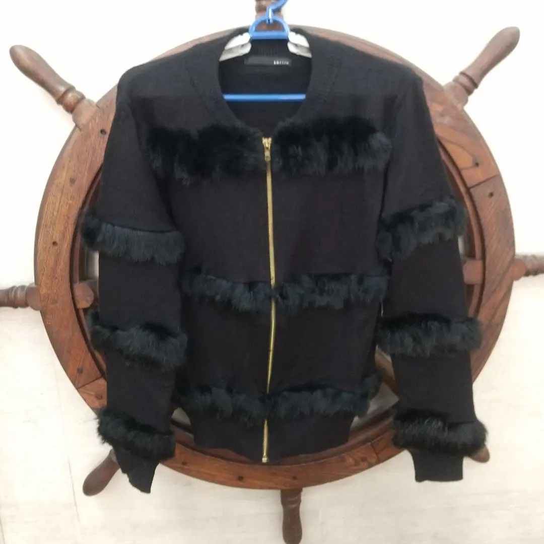 ☀️Laitro ☀️ファー付きブラックニットジャケット
