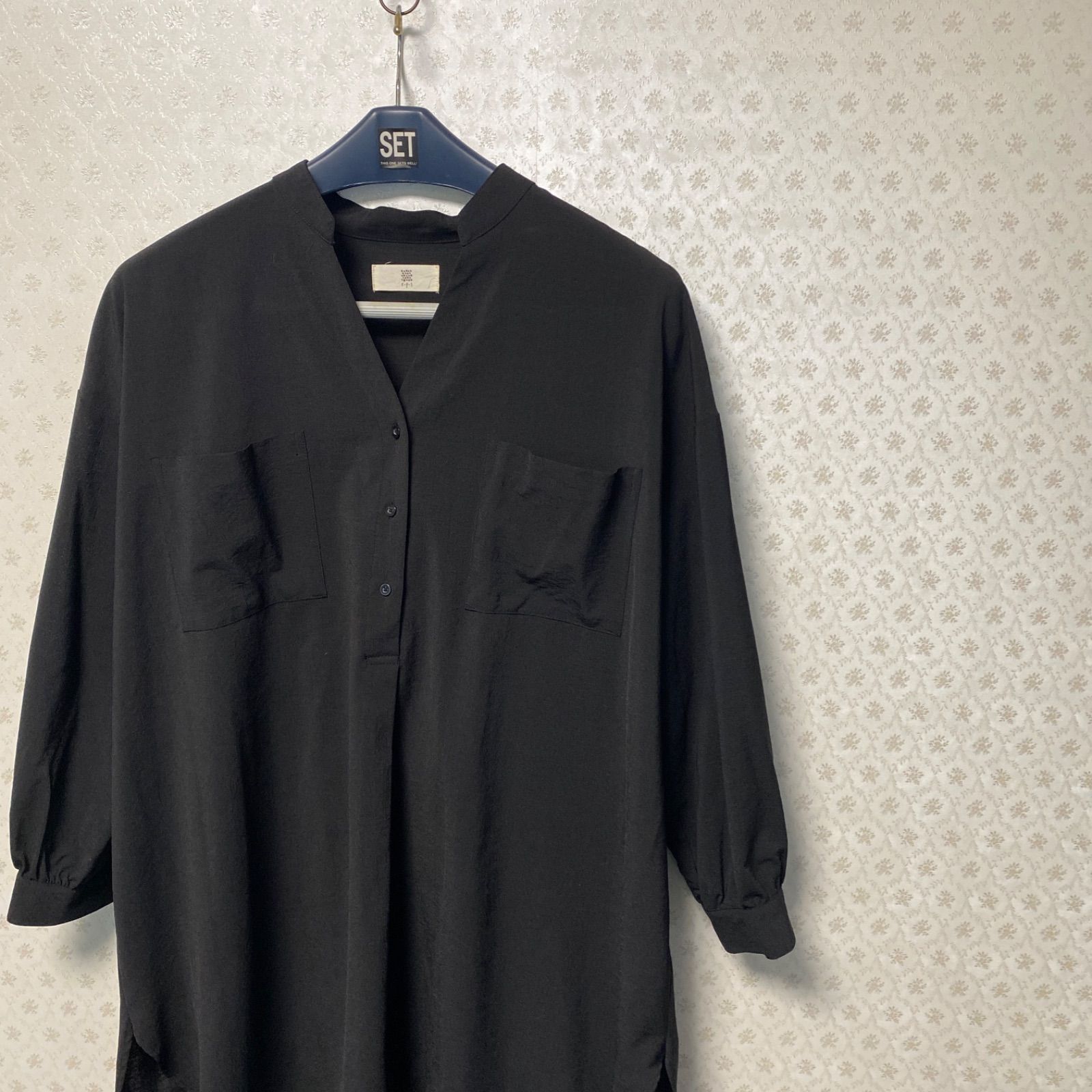 ⭐️美品⭐️r•p•s / アールピーエス⭐️レディース⭐️七分袖丈ロングシャツ/ワンピース/チュニック⭐️ブラック⭐️M