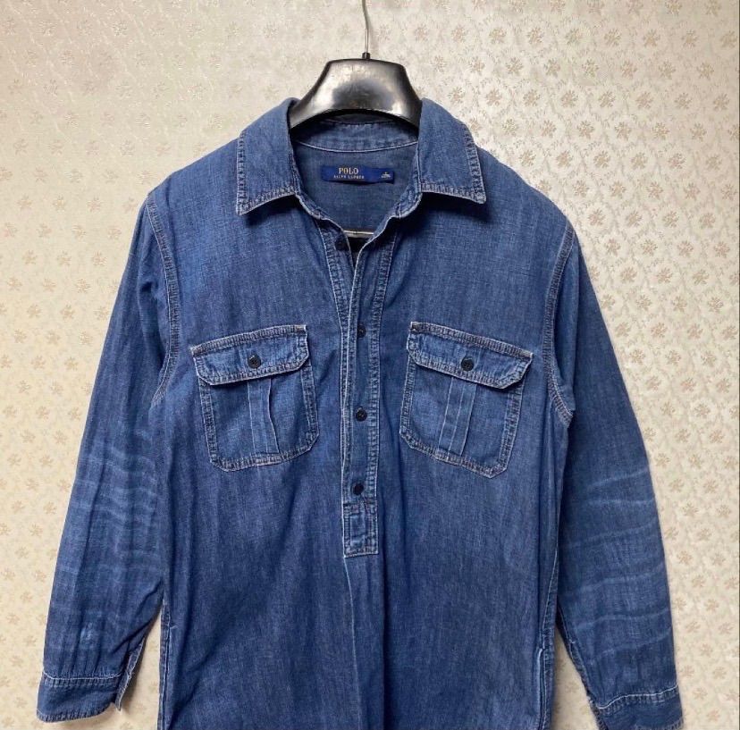 ★ポロラルフローレン★レディース★長袖ワンピースシャツ デニム M インディゴ
