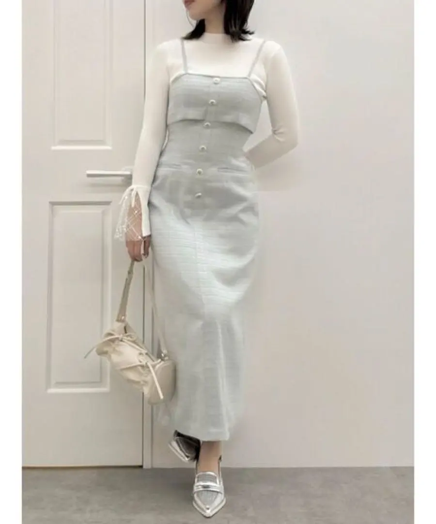 dazzlin レイヤードツイードロングキャミワンピース ブルー