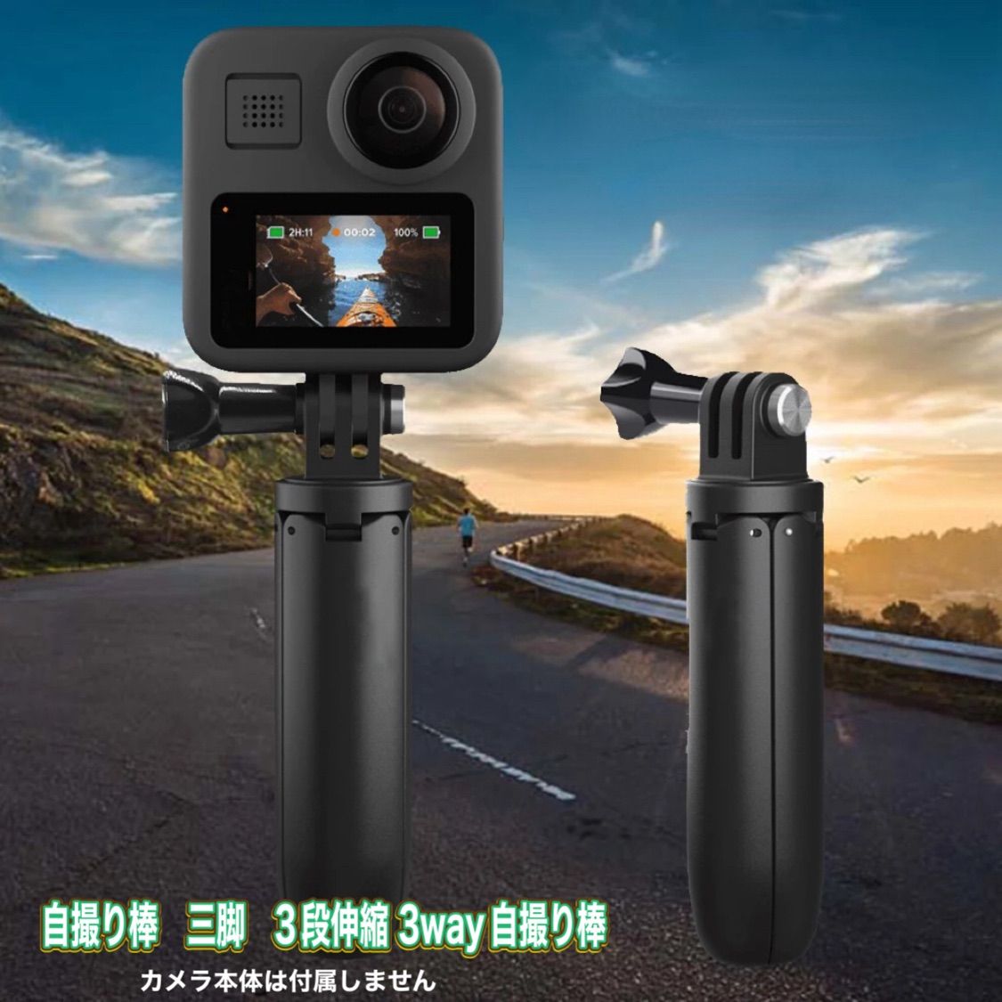 GoPro 自撮り棒 セルカ棒 3段伸縮 3way自撮り棒 伸縮一脚 三脚 ゴープロ DJI OSMO ACTION/OSMO POCKET用 アクションカメラ vlog アクセサリー