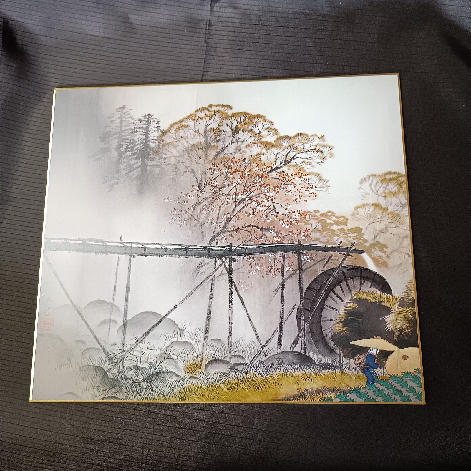 色紙アート 川合玉堂 「春雨」 自然画 風景画 色紙絵 絵画 インテリア (396)