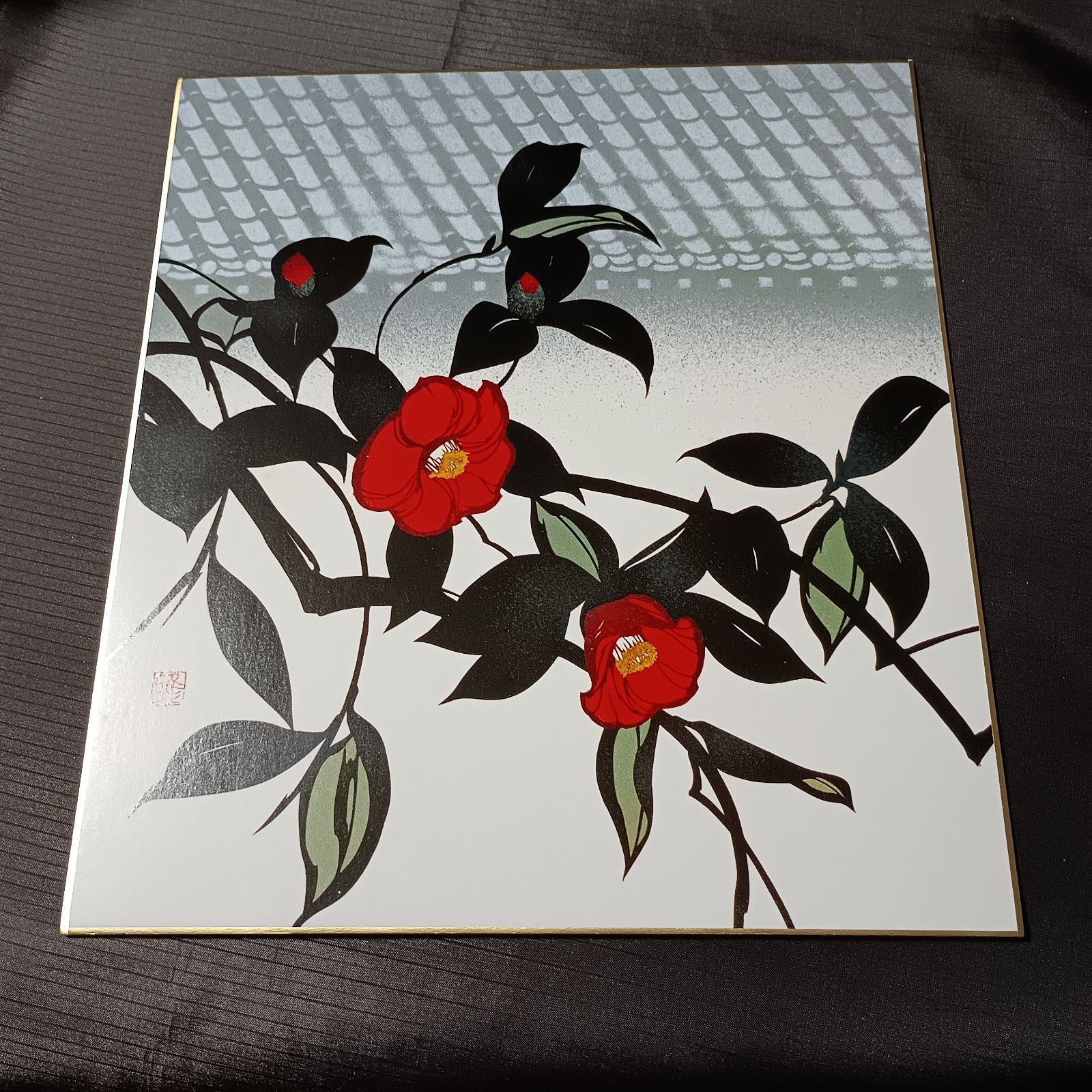 色紙アート 椿 つばき ツバキ 花絵 自然画 風景画 色紙絵 絵画 インテリア (398)