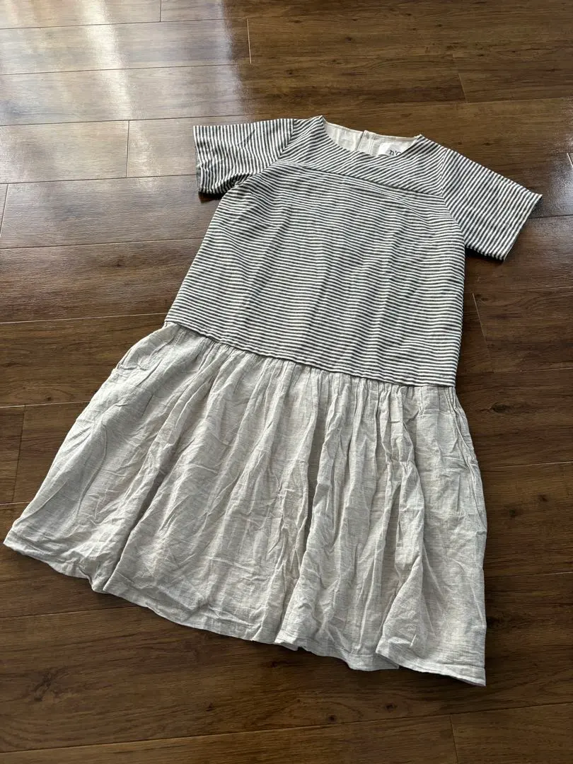 n'Or ストライプ 半袖 ドッキングワンピース ロング丈Free