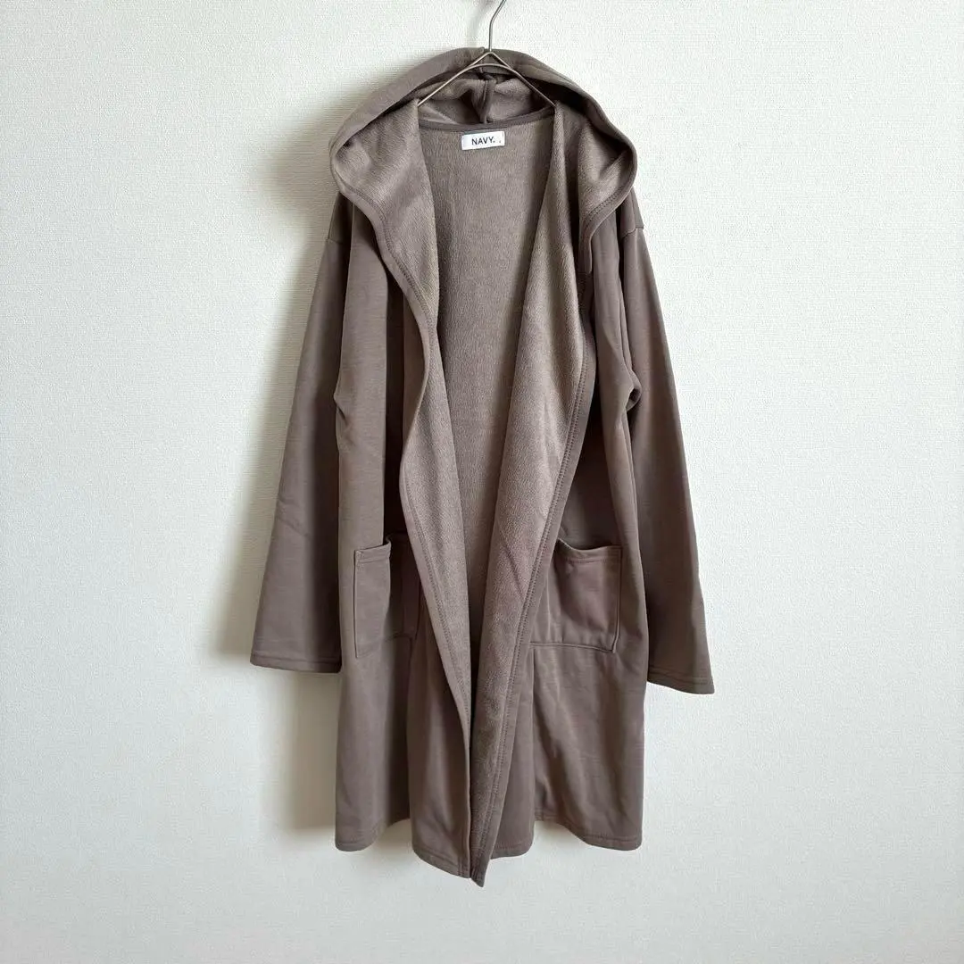 ネイビー フード付き コート カーディガン 裏起毛 キレイめカジュアル