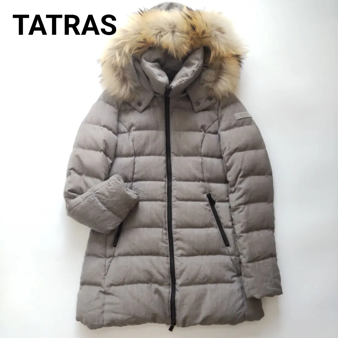 タトラス セラミカ ファー フード付き 表地ウール ダウンコート グレー 3
