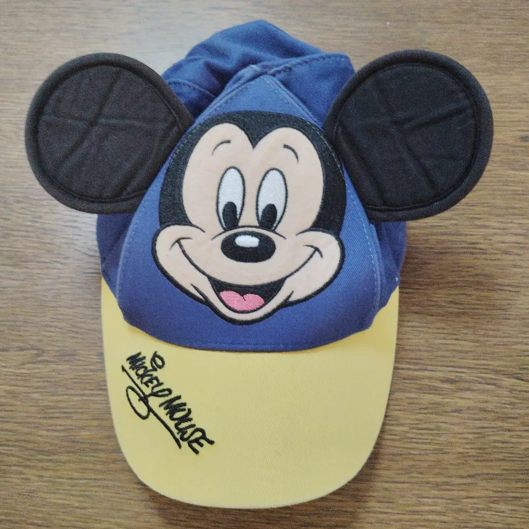 KID)香港ディズニー・ミッキーマウス キッズキャップ 青/黄色・耳付きキャップ