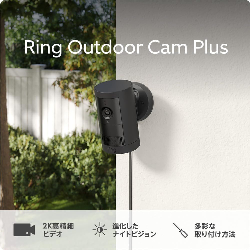 Ring Outdoor Cam Plus 2K 360万画素 電源アダプターモデル ブラック