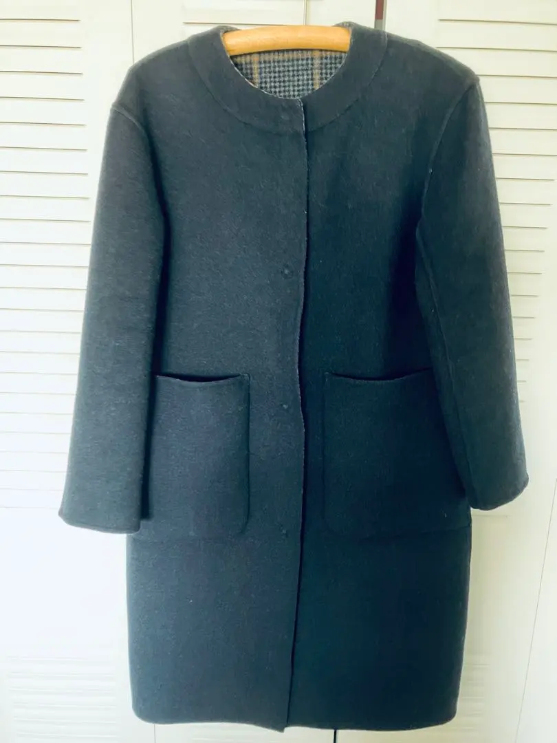 【美品】KUMIKYOKUウールコート ダークグレー チェック裏地