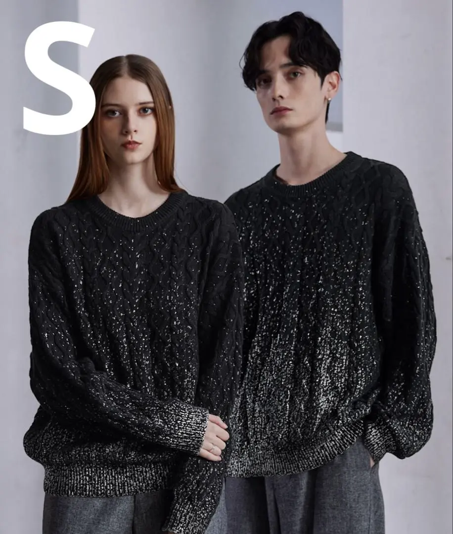 新品 即日発送 CLEL 箔プリントケーブルクルーネックニット S ブラック