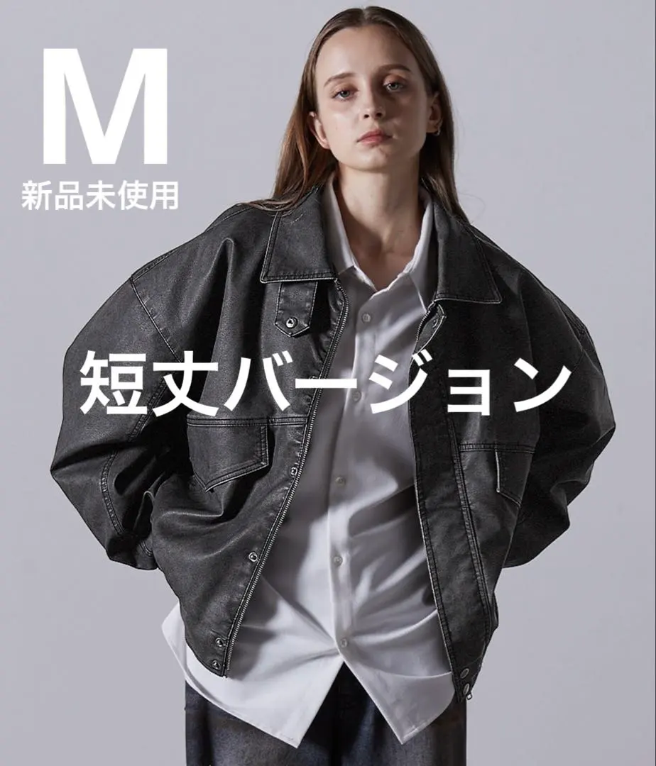 新品 CLEL ヴィンテージデザイン合皮ブルゾン 短丈バージョン M ブラック系