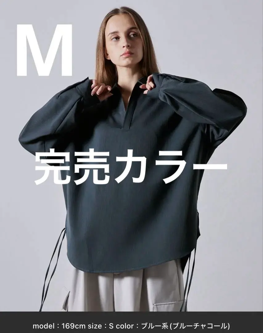 完売カラー CLEL クレイル ヘリンボーンスキッパーシャツ M ブルー系