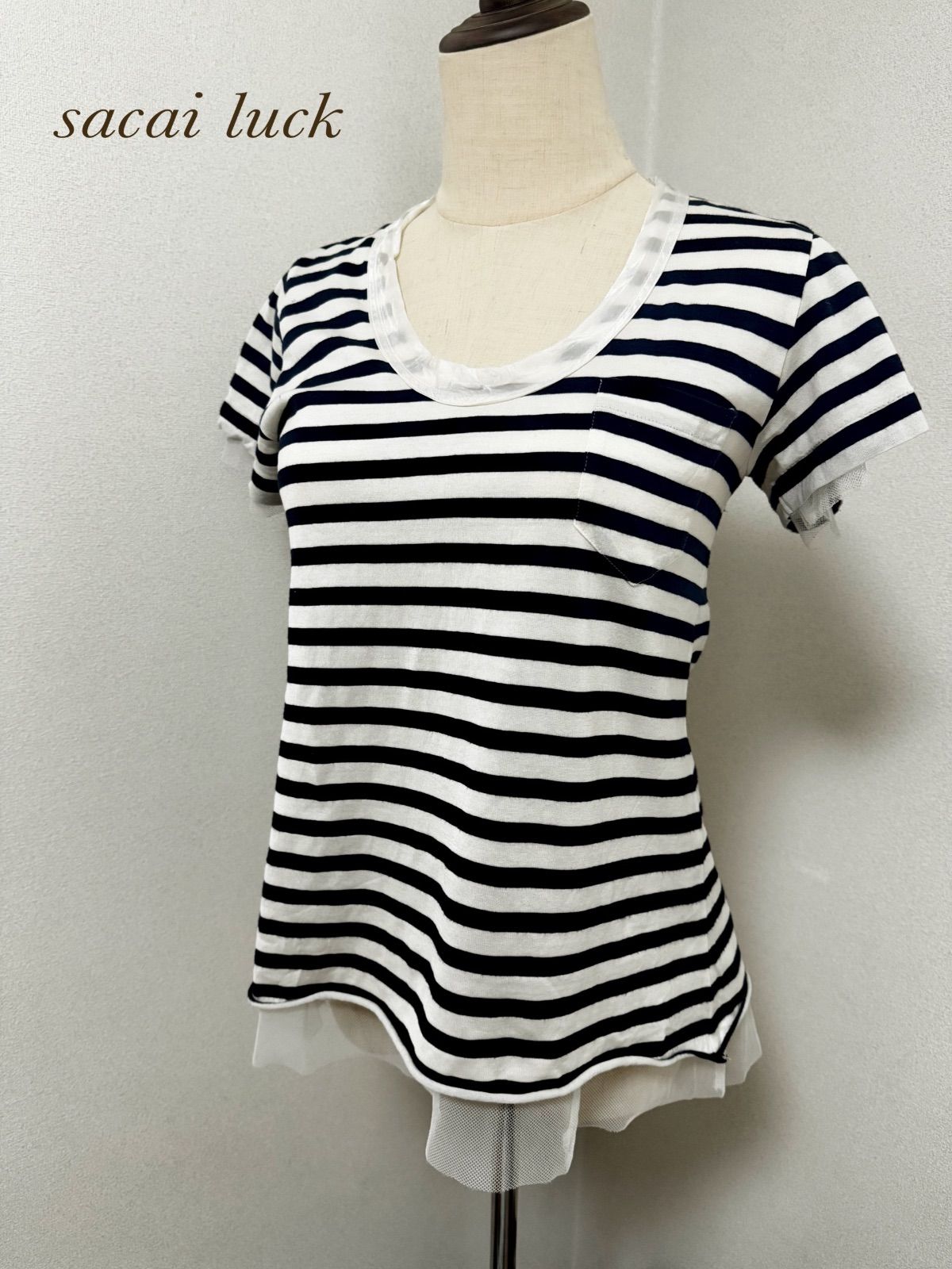 sacai luck サカイラック ボーダー 半袖Tシャツ チュール