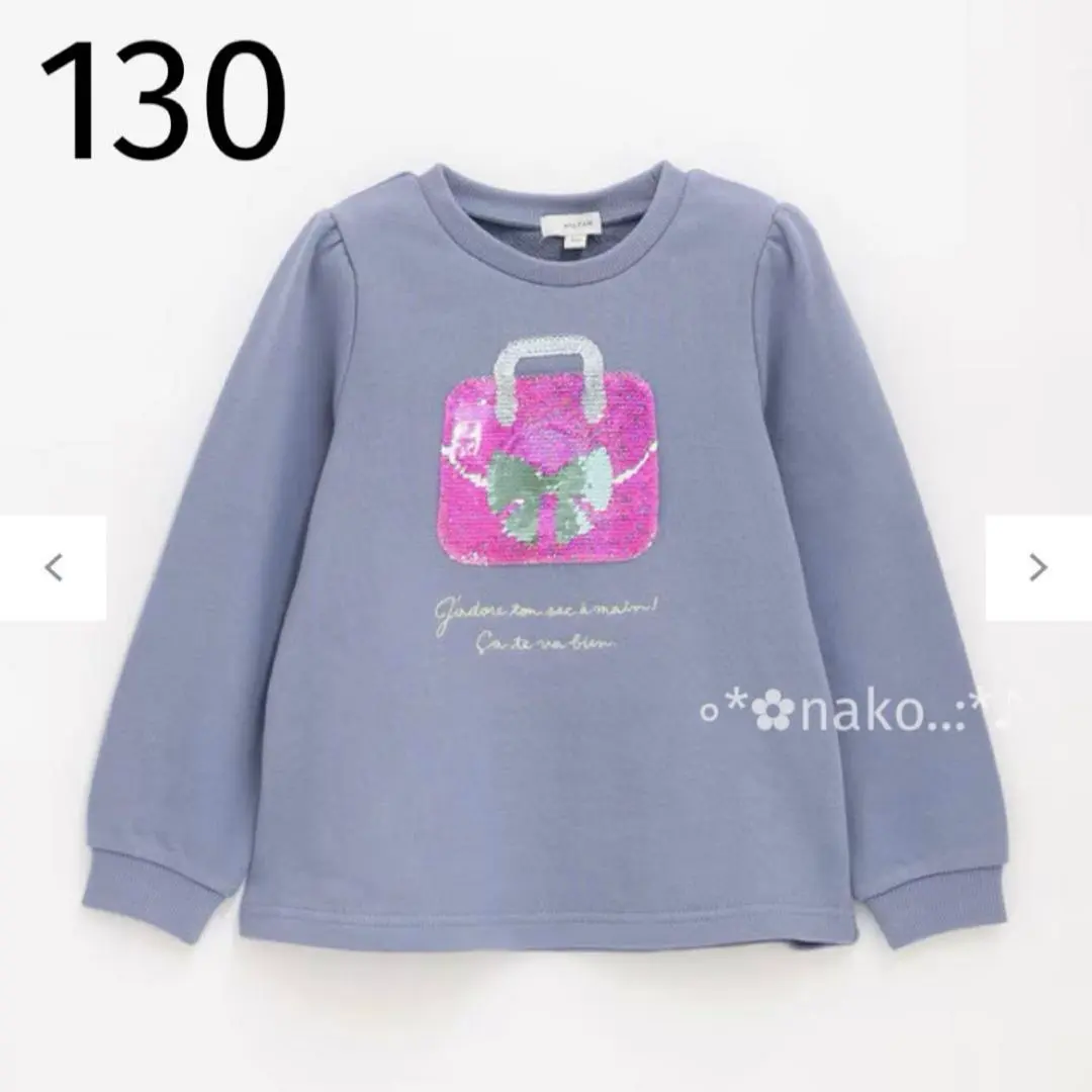 新品 130 anyFAM 両面 フリース スパンコール トレーナー サックス