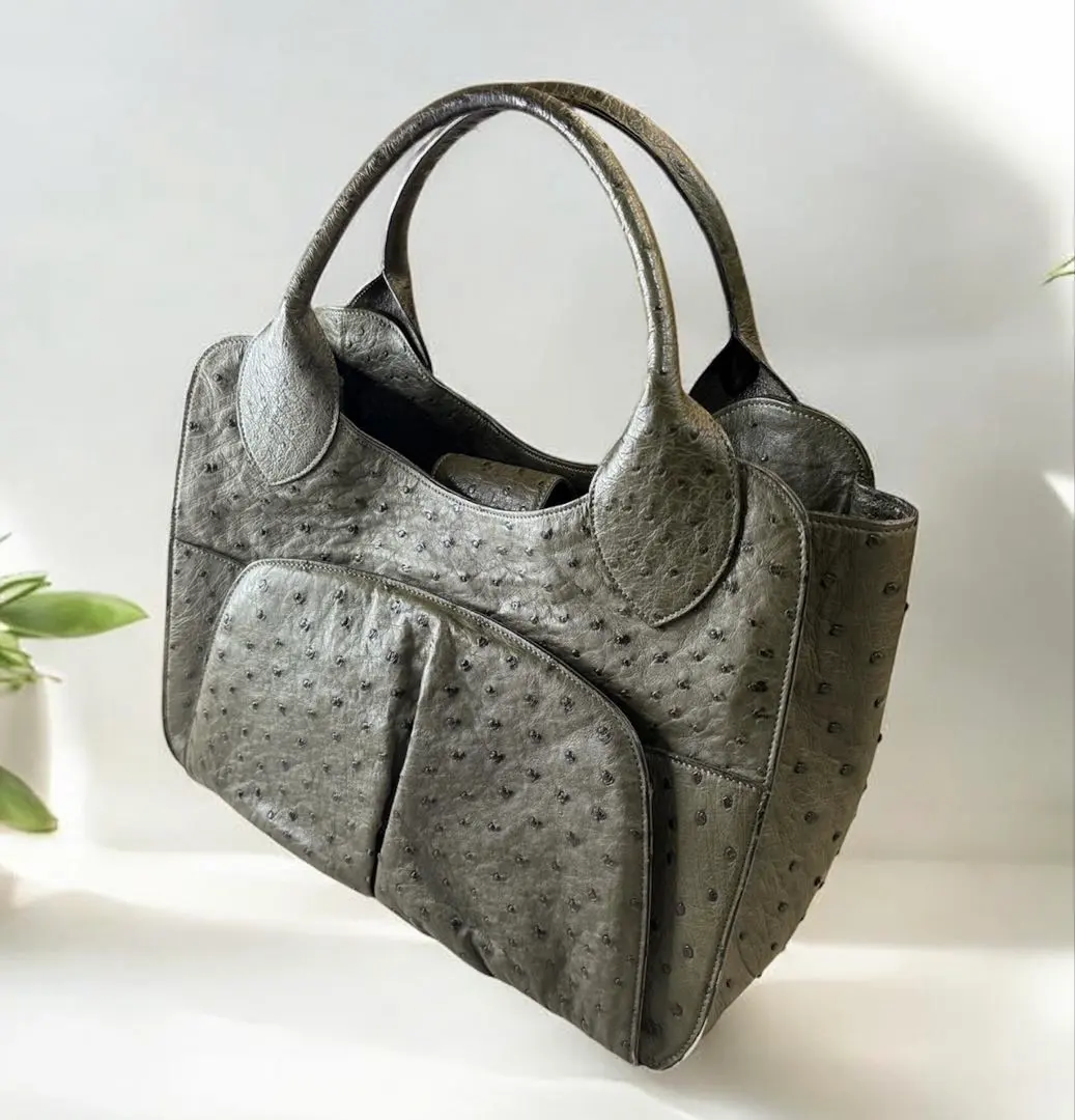 【ZAO】JRA オーストリッチレザー ハンドバッグ オリーブグリーン