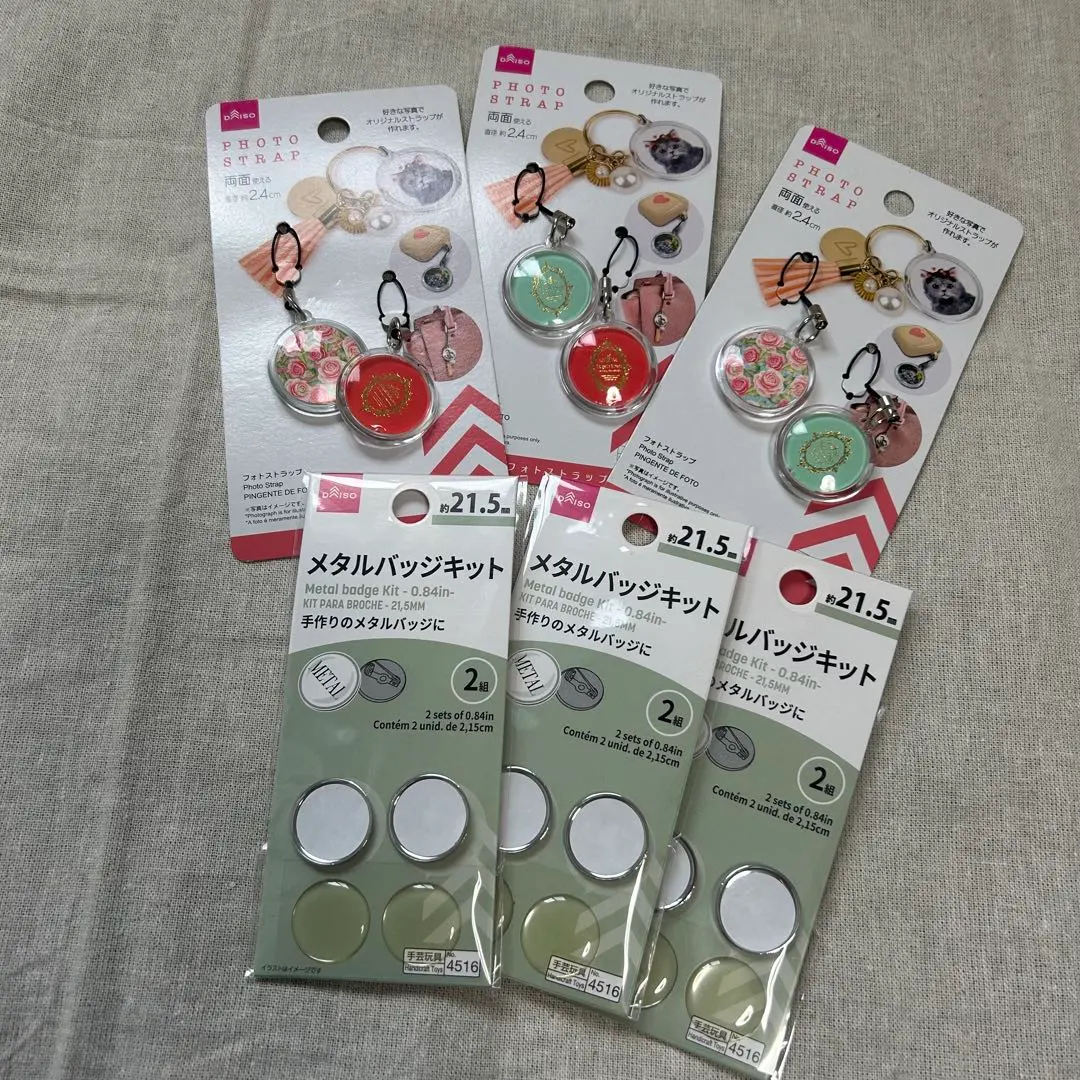 ダイソー メタルバッジキット(3個) フォトストラップ(3個)