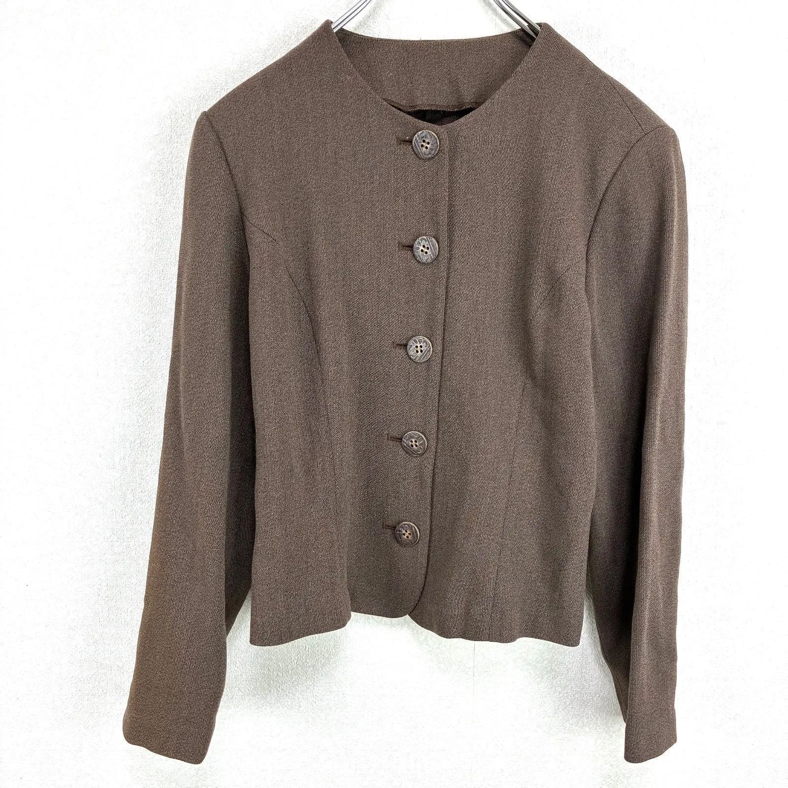 ノーカラージャケット【M】レトロ ウール レーヨン 長袖 薄手