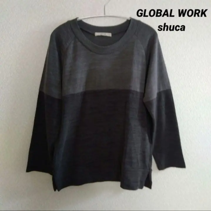 shuca GLOBAL WORK グレー 長袖 ニット S ツートンカラー