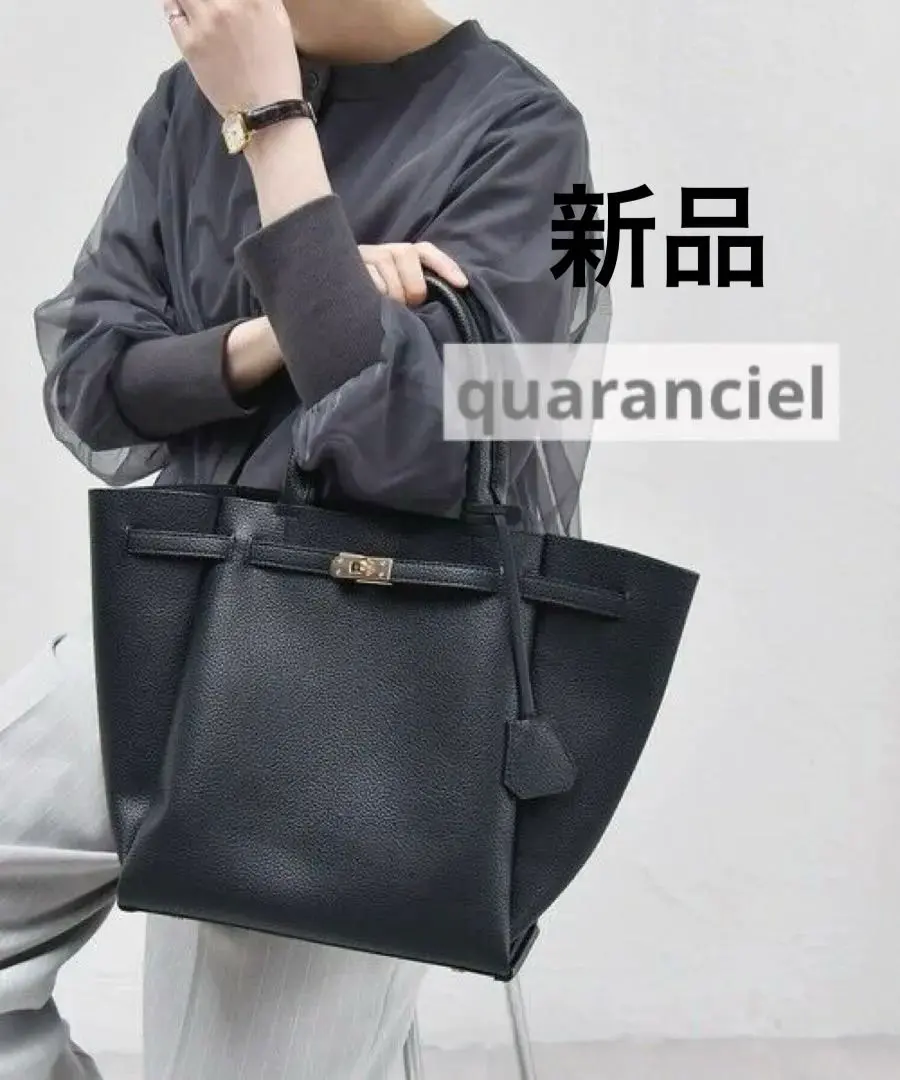 新品 SHIPS quaranciel: A4 ベルトトート 金具デザイン 黒