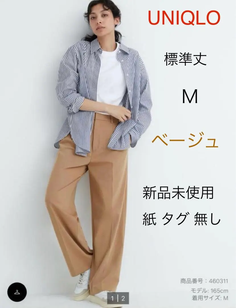 UNIQLO タックワイドパンツ 標準丈 M ベージュ