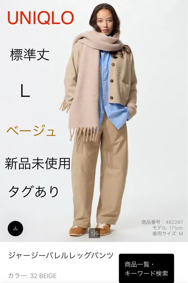 UNIQLO ジャージーバレルレッグパンツ 新品未使用 標準丈 L ベージュ