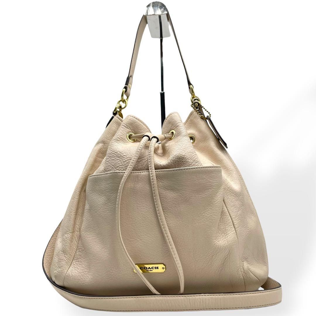 極美品 COACH コーチ 2way ショルダーバッグ 巾着 アイボリー レザー