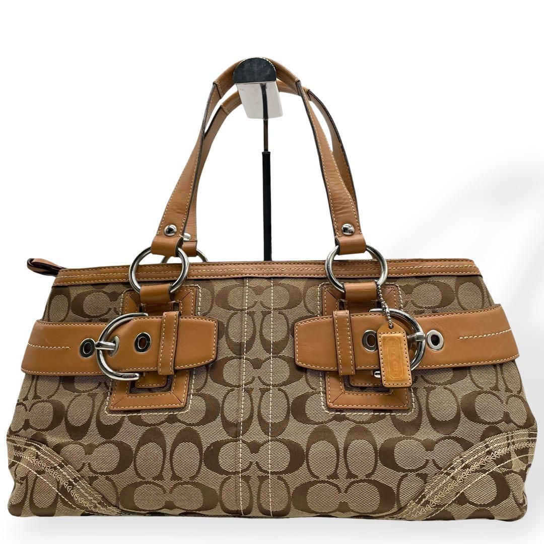 美品 COACH ハンドバッグ シグネチャー ブラウン キャンバス レザー