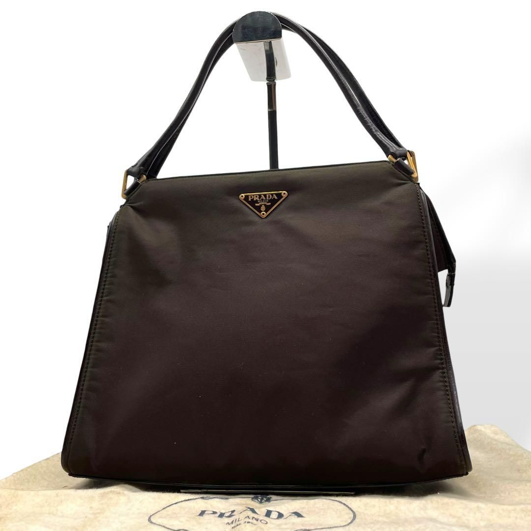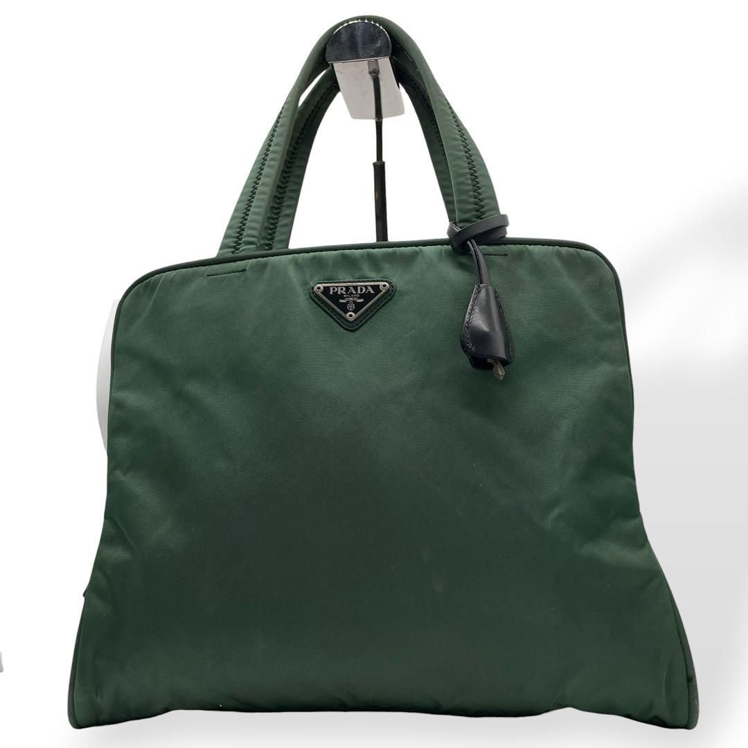 美品 PRADA プラダ ナイロン ハンドバッグ グリーン 白タグ 三角ロゴ