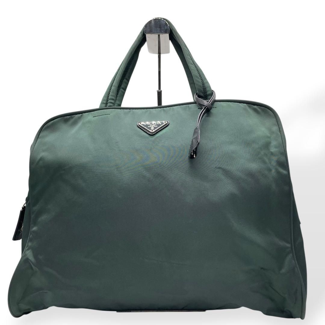 美品 PRADA プラダ ナイロントートバッグ グリーン A4可能 白タグ