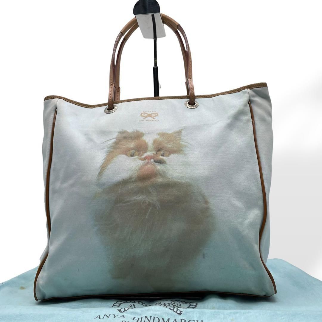 美品 Anya Hindmarch アニヤ トートバッグ 猫プリント