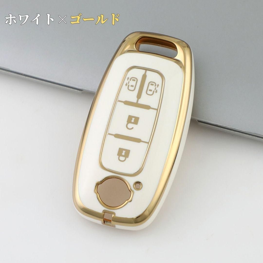 日産Nissan新型 スマートキーケース TPU キーカバー 4ボタン 両側スライドドア ホワイト×ゴールド