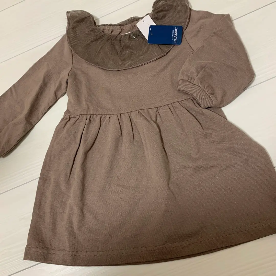 シンプル 無地 レース 茶色 ブラウン ワンピース サイズ95 タグ付未使用