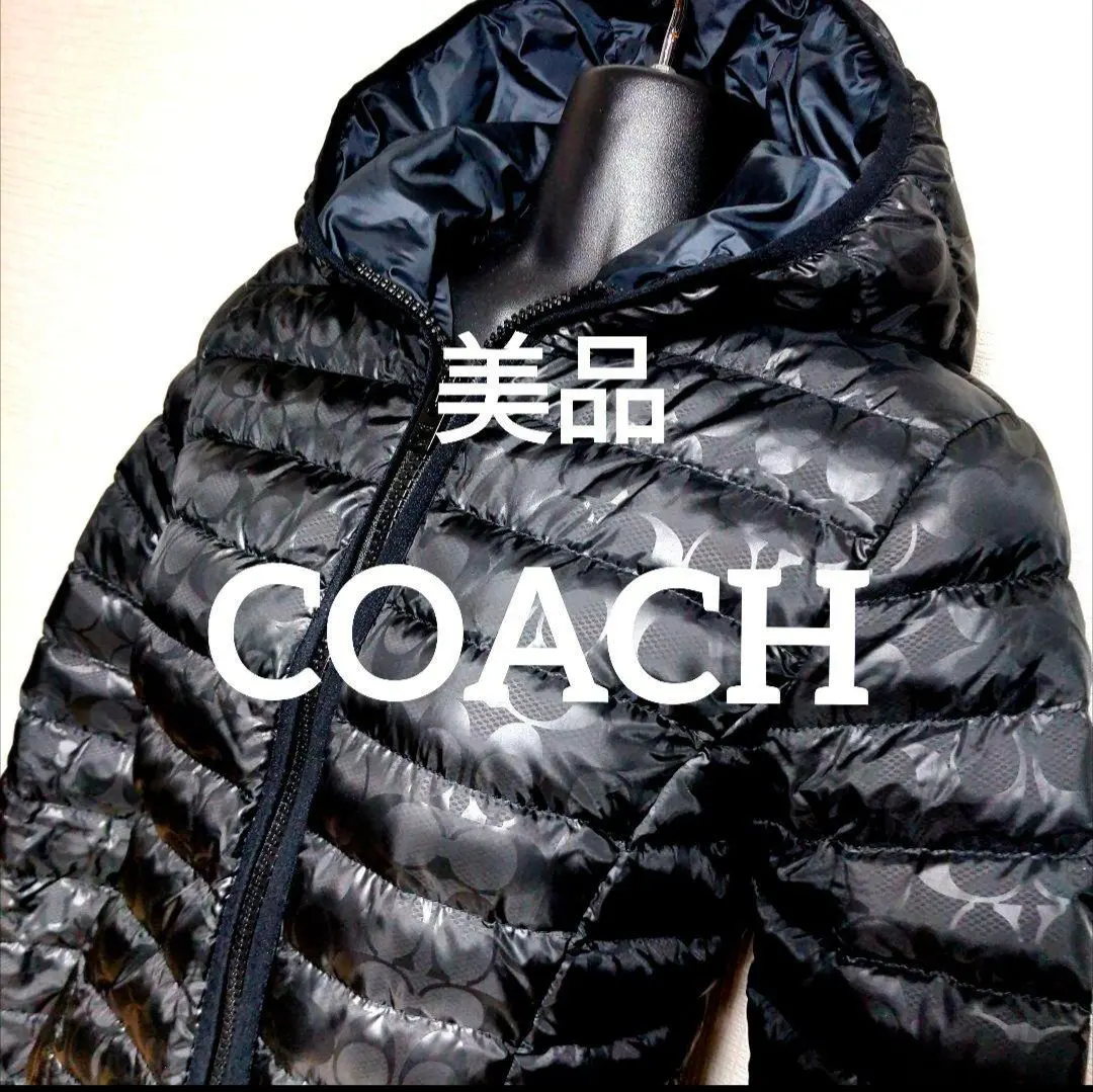 cn32 美品 COACH ダウンジャケット 黒 総柄 レディースMサイズ相当